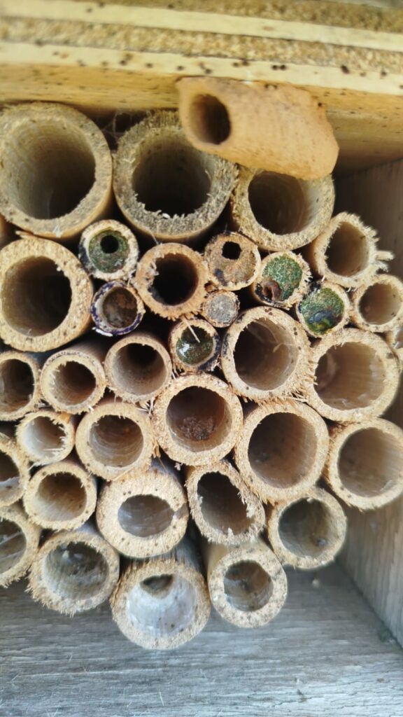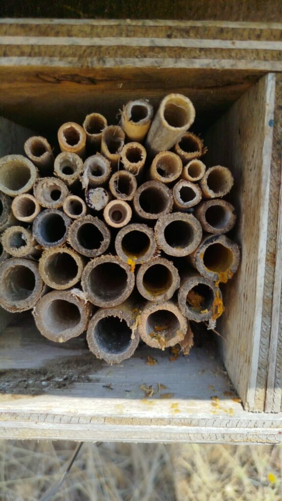 Se realizó el seguimiento de las cajas de polinizadores para conocer la actividad de abejas y avispas solitarias especialmente, que desempeñan un papel crucial en la polinización natural de cultivos y flora silvestre y las cuales son unos magníficos bioindicadores.