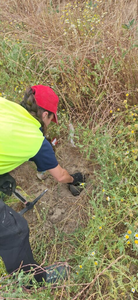 Colocación y recogida de trampas pitfall, empleadas para muestrear los artropodos del suelo. Estos seres vivos son fundamentales para procesos como la descomposición, el control biológico y la polinización.